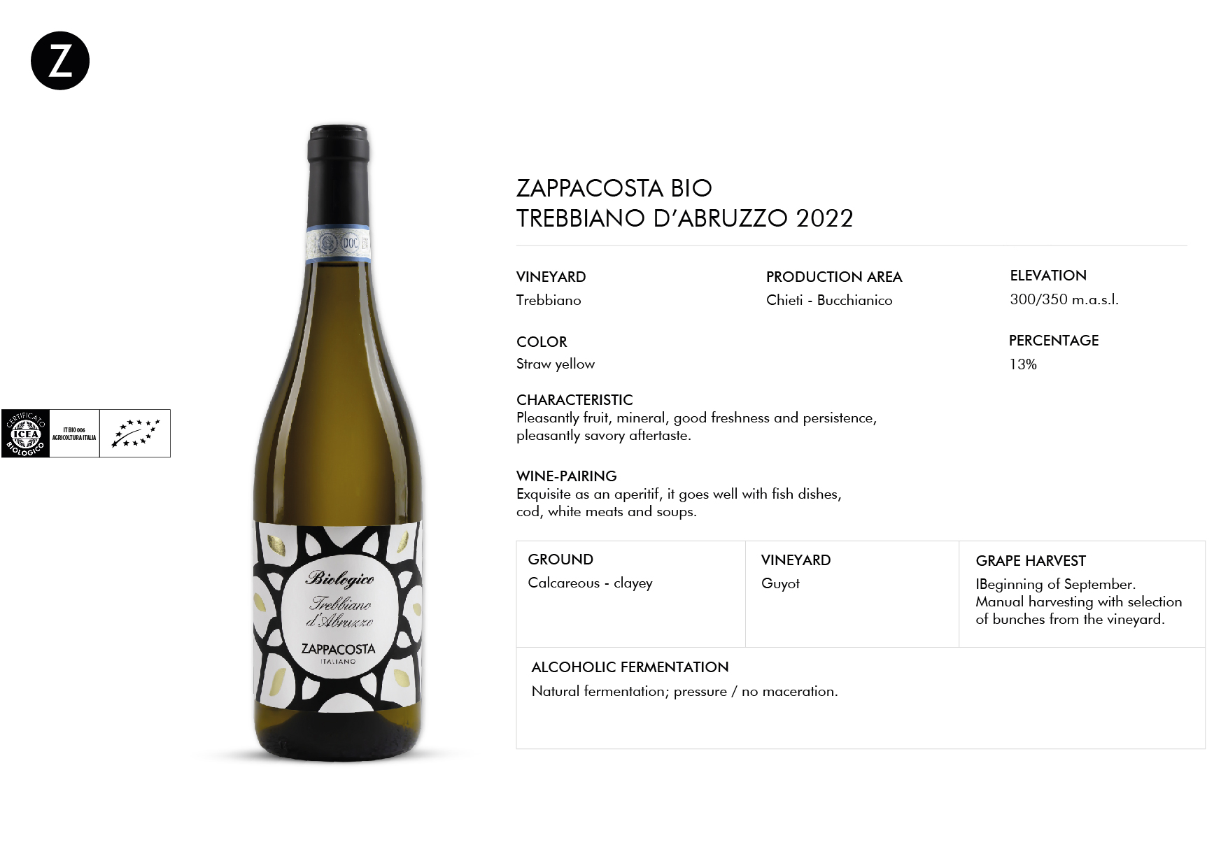 🍷 Zappacosta Bio Trebbiano d'Abruzzo 2022